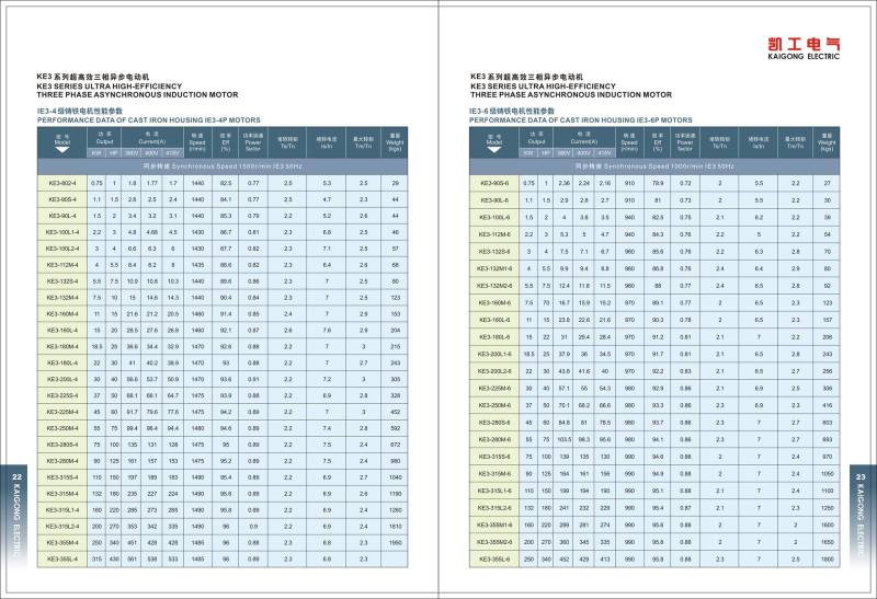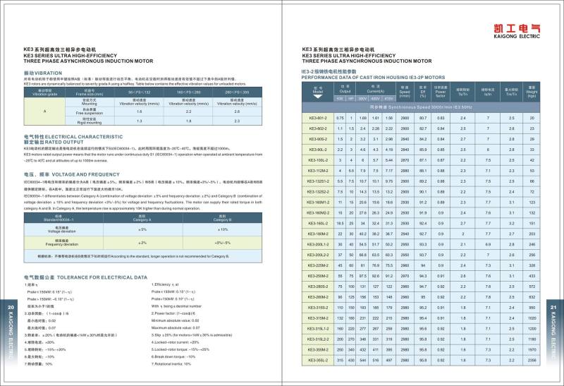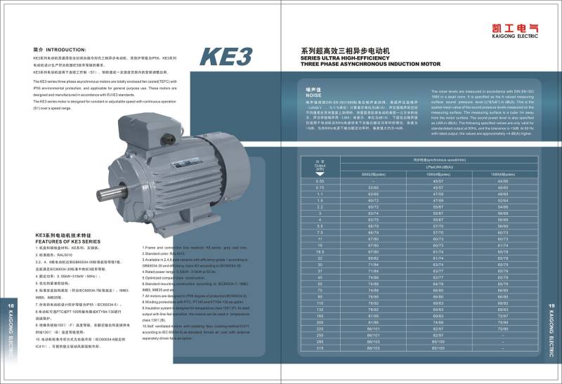 The KE3 series three phase asynchronous motors are totally enclosed fan cooled(TEFC) with IP55 environmental protection, and applicable for general purpose use. These motors are designed and manufactured in accordance with EU IE3 standards.